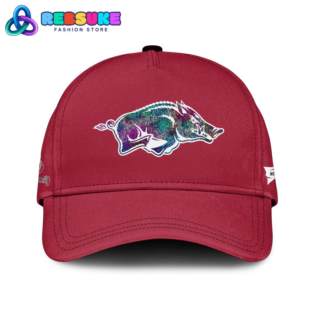 The collaborative logos and commemorative markers are masterfully applied across all three pieces of the Arkansas Razorbacks Grateful Dead set. On the lower front of the hoodie is the dedicated 60th Anniversary badge, featuring the years “1965-2025” alongside a mashup of the team and band logos, subtly cementing the historical importance of the collection. The signature Razorbacks logo is boldly featured on the front of the baseball cap, energized with a swirling, psychedelic color pattern that contrasts beautifully against the cardinal fabric. This reimagining of the classic Razorbacks emblem is highly artistic and a true standout feature.