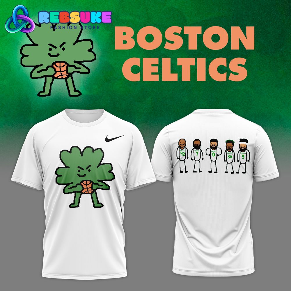 This unique combination of a modern front logo and a detailed back graphic makes the Boston Celtics New Design Logo 2025 Limited Edition Shirt a truly special piece of fan gear. The new shamrock character on the front symbolizes the team’s enduring strength and fighting spirit, while the caricatures on the back celebrate the individual talent that makes the Boston Celtics great. The juxtaposition of these two styles creates a dynamic and engaging design that is unlike anything else on the market. This limited edition shirt is a testament to the team’s rich history and its bright future. The Boston Celtics New Design Logo 2025 Limited Edition Shirt is more than just clothing; it’s a wearable piece of art that encapsulates the passion and pride of the Boston Celtics fan base.