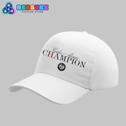 The front of the Carlos Alcaraz Back To Back Champions Roland Garros 2025 Hoodie Set features a sleek and celebratory design, honoring Carlos Alcaraz‘s potential triumph. The prominent “Carlos Alcaraz” signature or stylized name is displayed, accompanied by the bold declaration “CHAMPION,” signifying his mastery on the clay courts. Below this, the iconic Roland Garros logo is prominently featured, solidifying the connection to the prestigious Grand Slam tournament. The overall design is clean and elegant, set against the crisp white background of the hoodie, making the message clear and impactful. This front design allows fans to proudly showcase their support for Carlos Alcaraz as a Roland Garros champion, combining classic tennis aesthetics with a modern celebratory feel.