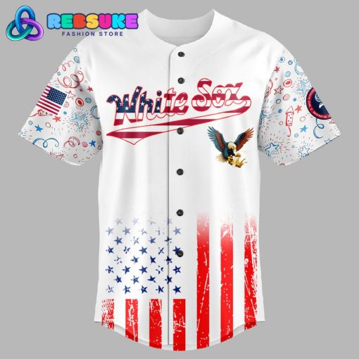 The jersey’s design is a cohesive work of art, with sleeves that present a dynamic celebration of Americana. This area features a thoughtfully composed pattern of vibrant fireworks, waving flags, and the official Chicago White Sox logo, reimagined for this patriotic occasion. This complete graphic treatment ensures the White Sox 2025 Jersey is visually breathtaking from every vantage point. It is this commitment to an integrated, all-over design that distinguishes it from any other MLB jersey, making it a perfect tribute to the spirit of Independence Day.