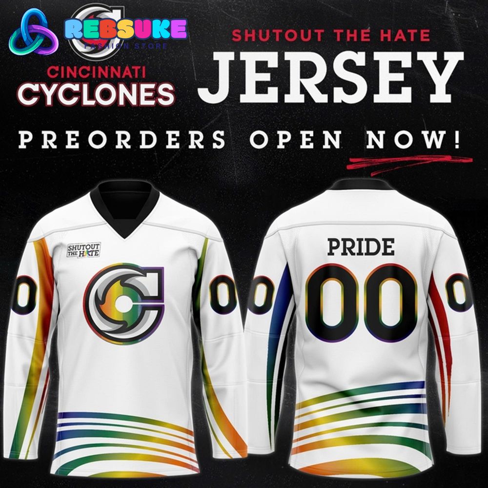 Don’t miss your chance to own a piece of this special event. The Cincinnati Cyclones x Pride Night jersey is a powerful symbol of unity and acceptance. It’s a testament to the club’s ongoing commitment to creating an inclusive environment where everyone feels welcome. This limited-edition jersey is an essential item for any fan who believes in the message of “Shutout the Hate” and wants to celebrate the power of love and acceptance.