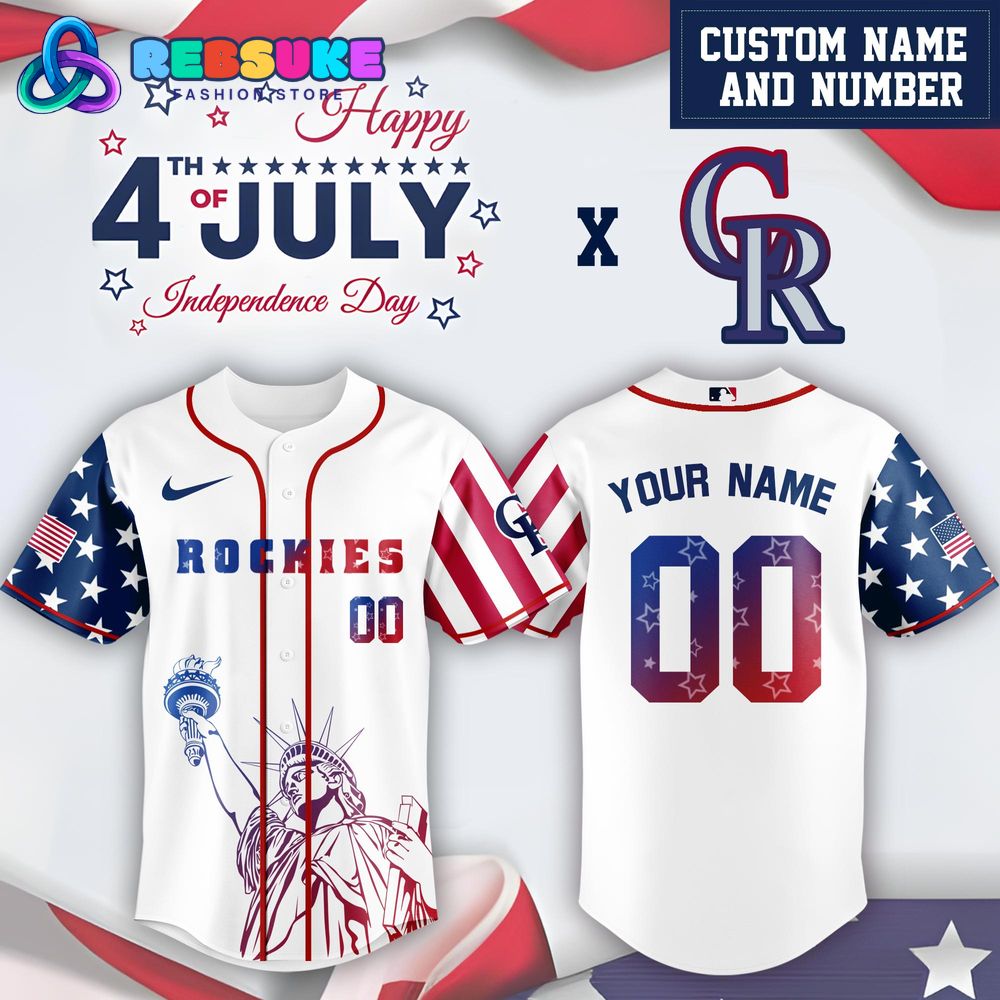 Every intricate detail of the Colorado Rockies x 4th Of July USA Baseball Jersey 2025 reflects superior craftsmanship and a design philosophy rooted in American tradition and the adventurous spirit of Colorado Rockies baseball. The seamless integration of cherished American symbols—the stars, the stripes, and Lady Liberty—with the official Colorado Rockies branding creates a powerful and cohesive visual statement that resonates deeply with fans. The celebratory “Happy 4th of July Independence Day” script, elegantly embellished with stars and prominently featured in the promotional imagery, perfectly captures the jersey’s festive and commemorative purpose. This USA Baseball Jersey is not merely sportswear; it is a wearable piece of art that proudly honors the nation and its beloved baseball team, making it an essential acquisition for any devoted Rockies fan looking to celebrate Independence Day with true Mile High spirit.