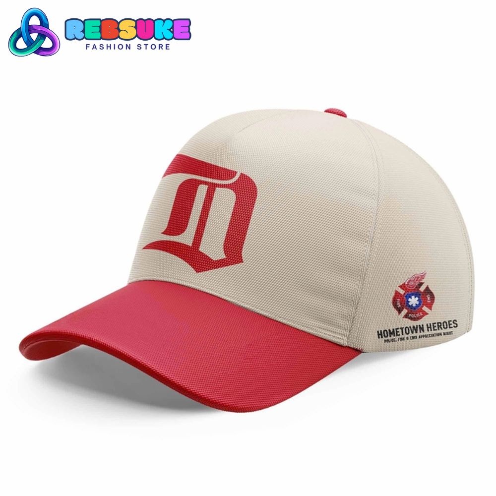 This hoodie set is completed by a matching hat that echoes the design of the hoodie. The hat is likely a classic baseball cap style, with a red brim and a cream-colored crown. The front of the hat features the same prominent Detroit Red Wings “D” logo, ensuring a cohesive and coordinated look. The overall design of both the hoodie and the hat is a perfect blend of team pride and a heartfelt tribute to the city’s dedicated first responders. Every element, from the bold colors to the meaningful graphics, has been thoughtfully crafted to create a set that is both stylish and full of significance, making the Detroit Red Wings Hometown Heroes Night Red Hoodie Set a perfect way to celebrate a special night at the arena.