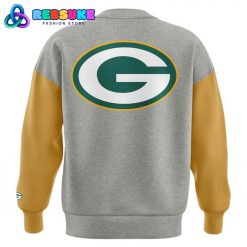 The back of the Green Bay Packers Essentials Sweatshirt features an impactful, oversized version of the team’s iconic “G” logo. This large-scale emblem, rendered in the classic green with a gold outline, dominates the back panel, ensuring that the wearer’s team loyalty is visible from any angle. The choice to use the timeless Packers logo on the back maintains the spirit of the team, while the garment’s cut and color scheme reflect the minimalist, elevated aesthetic of Fear of God. This careful balance of prominent team iconography and high-fashion sensibility makes the Green Bay Packers x Essentials Fear of God Sweatshirt a uniquely desirable and visually appealing piece of limited edition Packers gear.