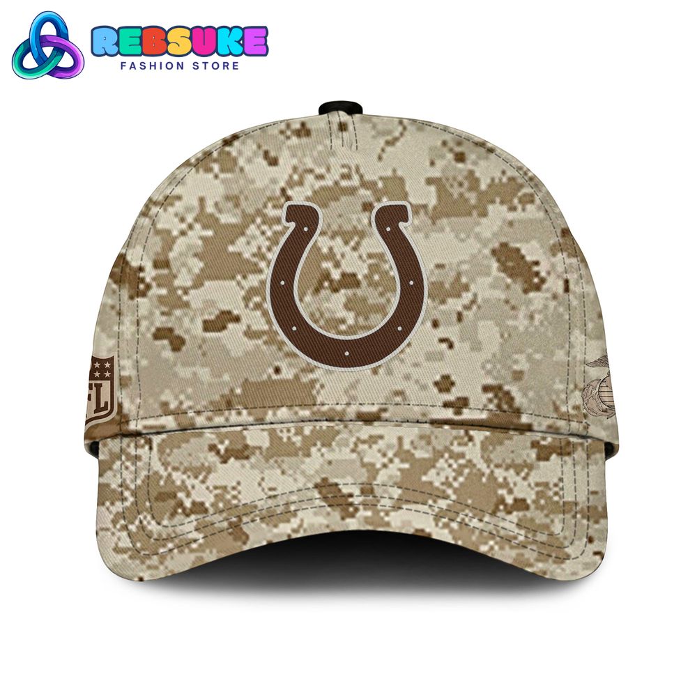 Completing the ensemble are the matching pants and a cap, which carry the same design principles. The pants feature the same digital desert camouflage pattern, with the Indianapolis Colts logo on one thigh and the US Marine Corps emblem—the Eagle, Globe, and Anchor—on the other. This consistent branding ensures a cohesive and stylish look. The accompanying cap also sports the camouflage pattern with the Colts logo on the front and the Marine Corps emblem on the side. This comprehensive approach to design ensures that every piece in the Indianapolis Colts x US Marine Corps 250th Birthday Hoodie Set contributes to a unified and powerful expression of pride and respect.