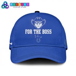 Completing the set, the Indianapolis Colts x Won For Jim Tribute Edition Limited Hoodie Set includes a matching hat that mirrors the hoodie’s design. The front of the Colts hat features the same captivating portrait of Jim Irsay, along with the bold “FOR THE BOSS” text. The hat itself is a vibrant blue, the official color of the Indianapolis Colts, with a classic curved brim. A subtle Nike swoosh logo is visible on the side, adding to the official feel of the set. This complete hoodie and hat set is the ultimate way for Colts fans to show their respect and honor the legacy of Jim Irsay, a true legend of the game.