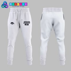 Iowa Hawkeyes Football “Jesus Won” White Hoodie Set