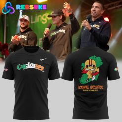 The design of the Iowa State Cyclones Football 2025 Ireland Game Shirt is a thoughtful and creative tribute to the historic international event. The front of the shirt features a sleek and modern graphic with the word “Cyclones” in a bold, stylized font. Below it, a subtle nod to the 2025 season and the game’s location is included. The left sleeve features the American flag, while the right sleeve proudly displays the Irish flag, a clear representation of the trans-Atlantic matchup. This detail highlights the cultural significance of the game and makes the shirt a truly unique piece of memorabilia.
