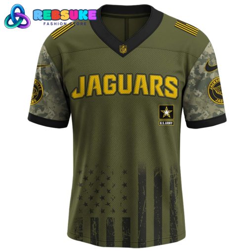 Elevate your game day attire and demonstrate your profound respect with this truly exceptional Jacksonville Jaguars NFL x U.S. Army 250th Birthday Celebration Jersey. It serves as an ideal gift for veterans, active-duty service members, and any dedicated Jacksonville Jaguars fan who wants to pay homage to the enduring legacy of the U.S. Army. Its distinctive design and the meaningful partnership behind it make it a highly coveted item, ensuring you’ll stand out from the crowd. Don’t miss this opportunity to own a piece of history that powerfully merges the strength and tradition of the U.S. Army with the relentless spirit of Jacksonville Jaguars football.