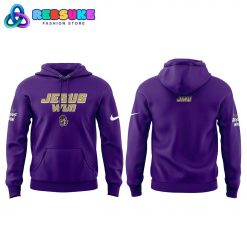 The design of the James Madison Dukes Football Jesus Won Special Hoodie Set is a study in bold, purposeful aesthetics, utilizing the university’s signature Royal Purple and Gold palette. The hoodie features a deep purple base that serves as a canvas for the striking “JESUS WON” text on the chest, rendered in a stylized gold and white block font. Positioned just below this message is the iconic JMU Dukes Bulldog logo, complete with its crown, representing the school’s “Dukes” identity. This Jesus Won graphic design is clean and impactful, ensuring the message is the focal point of the garment.