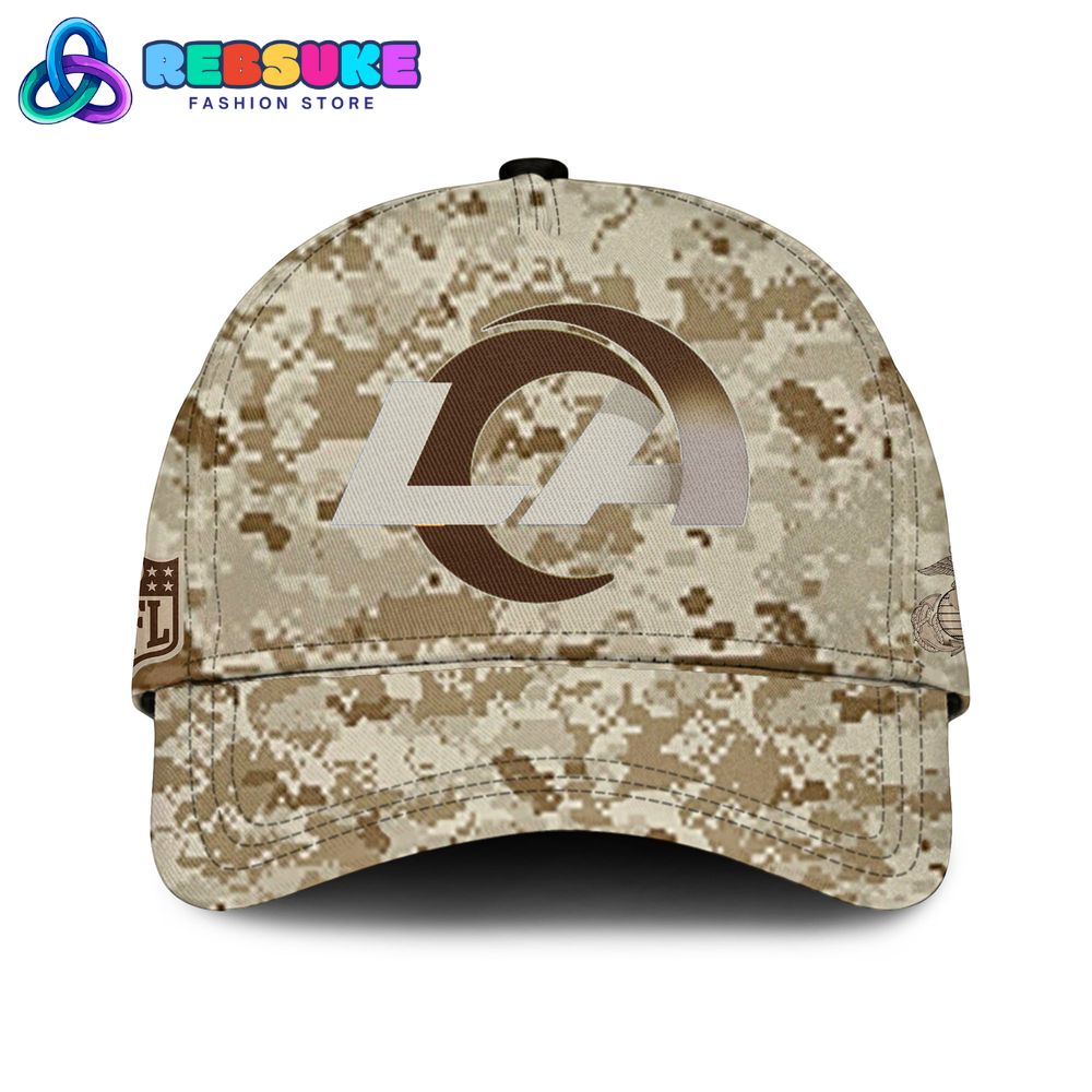 The cohesive design theme extends throughout the entire hoodie set, ensuring a unified and stylish look. The matching pants, made with the same digital desert camouflage pattern, feature the striped Los Angeles Rams logo on one leg and the iconic US Marine Corps Eagle, Globe, and Anchor emblem on the other. This thoughtful placement reinforces the dual allegiance of the wearer. The accompanying cap completes the ensemble, showcasing the camouflage pattern with the Rams logo on the front and the Marine Corps emblem on the side. Every element of the Los Angeles Rams x US Marine Corps 250th Birthday Hoodie Set is a testament to meticulous design and a shared sense of honor, courage, and commitment.