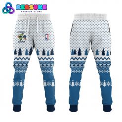 The trousers of the Minnesota Timberwolves 2025 Christmas Grinch Jumper Hoodie Set perfectly mirror the top’s detailed artistry for a seamless look. The joggers include a tapered design with ribbed navy blue cuffs at the bottom, mirroring the hoodie’s trim for a polished finish. Repeating patterns of the NBA logo and “Grinch” text run along the legs, ensuring the Timberwolves holiday tracksuit is instantly recognizable from any angle. The careful placement of blue, white, and green accents reinforces the team’s visual identity while the playful Grinch holiday design adds a unique, festive personality that separates this from standard athletic wear.