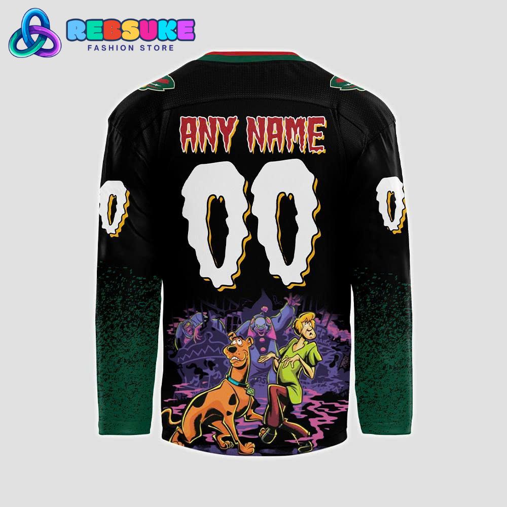 This exclusive Minnesota Wild jersey celebrates a special collaboration, bringing together the excitement of Minnesota Wild hockey and the nostalgic charm of Scooby-Doo. Imagine your favorite Wild players hitting the ice in these vibrant and eye-catching specialty jerseys. The Scooby-Doo Wild jersey is not just a piece of fan apparel; it’s a collectible item that commemorates a memorable event. Show your passion for the Minnesota Wild and your favorite cartoon dog with this one-of-a-kind hockey jersey. Don’t miss your chance to own a piece of Minnesota Wild history with a spooky twist.