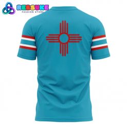 The design of the New Mexico Lobos The Turquoise Limited Edition Shirt is a masterful blend of athletic apparel and cultural tribute. The front and back work together to tell a story of tradition, identity, and respect. The front, with its clean UNM wordmark and uniform stripes, is instantly recognizable as a piece of Lobos football gear. The back, featuring the revered Zia symbol, elevates the shirt from simple merchandise to a meaningful representation of New Mexican culture. Every aspect, from the color choice to the placement of each graphic, has been thoughtfully crafted, making this a truly unique and powerful piece for any fan of the New Mexico Lobos.