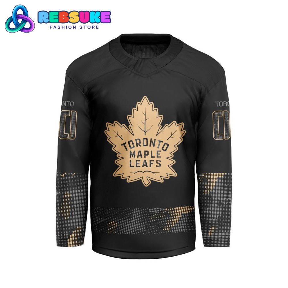 Every detail of the NHL Toronto Maple Leafs x Military Appreciation Jersey 2025 is crafted with precision, from the sharp stitching to the vibrant colors that pop against the black fabric. The jersey also includes a pixelated texture on the lower half, adding a futuristic flair to the design, while the starburst effect around the logo on the front adds depth and character. This jersey is a flawless fusion of style, symbolism, and functionality, making it an unforgettable piece for fans who want to celebrate their team and honor military heroes in a way that’s both stylish and meaningful.