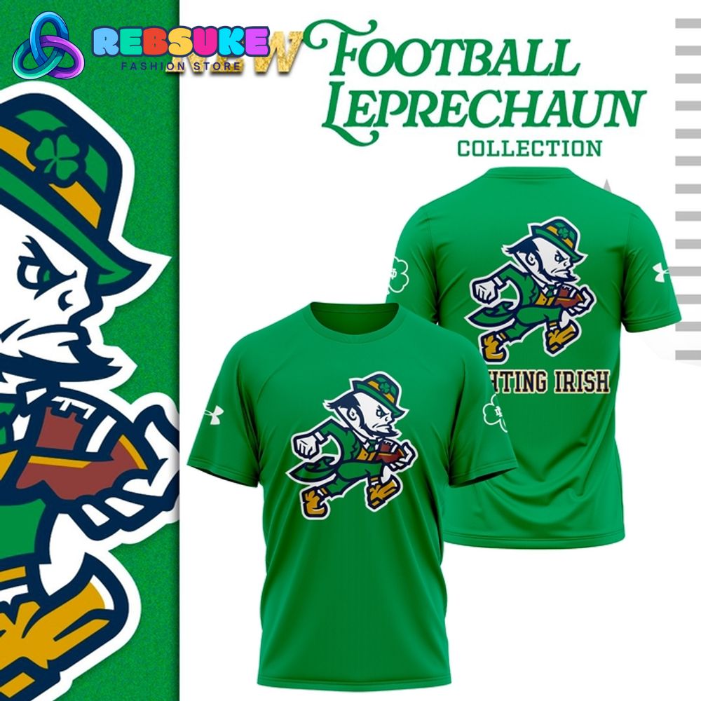 The details on the sleeves of this Notre Dame Football shirt further enhance its unique appeal. The “Football Leprechaun Collection” shirt features subtle design elements, such as a shamrock or another team logo, that add an extra layer of authenticity and style. The vibrant green color of the shirt, along with the iconic illustrations, makes it a standout item in any crowd. Every element of the Notre Dame Football “The Fighting Irish” 2025 Special Shirt has been thoughtfully crafted to celebrate the legacy and spirit of the Fighting Irish, making it a fantastic way to honor the team’s rich tradition.