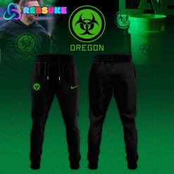 The design of the Oregon Ducks “The Lab” 2025 Limited Edition Hoodie is a masterwork of edgy, contemporary graphics, centered around a powerful, neon-green, biohazard-style emblem. The hoodie is a sleek black, providing the perfect dark background for the intense, contrasting neon-green graphics . On the front, the prominent feature is a circular biohazard-style symbol—a striking visual that implies the team is a potent and dangerous force—with the word OREGON printed beneath it in bold, block letters . The top of the hoodie also features the iconic Nike swoosh, a nod to the deep connection between the University of Oregon and the global athletic brand .