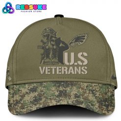 The entire Philadelphia Eagles x U.S. Veteran Day Night Game 2025 Hoodie Set is a testament to its cohesive and thoughtful design. The pants maintain the military camo theme, with the Eagles logo and the NFL shield subtly placed near the waistband. The accompanying baseball cap is the perfect finishing piece, with a solid olive green front panel showcasing the saluting soldier and “U.S VETERANS” text. Its brim continues the camouflage pattern, seamlessly tying the entire set together. Every detail of this Eagles apparel, from the color scheme to the placement of each graphic, has been carefully selected to create a piece that is not only a fantastic addition to any fan’s wardrobe but also a meaningful tribute to those who have served our nation.