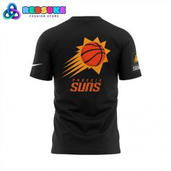 The back of the Phoenix Suns “The Sun Man” 2025 Limited Edition Shirt ties the entire design together with a bold and classic logo. The “sunburst” design, with a basketball at its center and sharp, dynamic lines, creates a powerful and iconic visual. This is the Phoenix Suns‘ core logo, a symbol recognized by fans worldwide. Below this logo, the words “PHOENIX SUNS” are printed in a clean, modern font, providing clear team identification. This combination of the classic sunburst with a fresh new character on the front makes this limited edition shirt a perfect blend of old and new, and a must-have for any fan looking for an authentic and stylish Phoenix Suns new logo 2025 shirt.