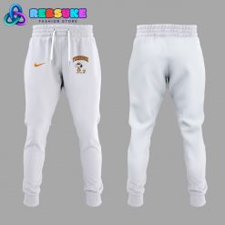 Complementing the Tennessee Volunteers hoodie are the matching white Tennessee Volunteers sweatpants. These comfortable and stylish bottoms feature a smaller version of the Snoopy and Woodstock graphic, similar to the back of the hoodie, positioned on the left thigh. The word “TENNESSEE” is emblazoned above the characters in the same bold orange collegiate font, ensuring a coordinated look. An orange Nike swoosh is also present on the left thigh, mirroring the sleeve detail on the hoodie and tying the design elements together. These Tennessee Volunteers sweatpants offer both comfort and team spirit, making the entire Tennessee Volunteers x Peanuts set a perfect choice for any fan.