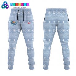 The back of the Toledo Walleye x Peanuts Charlie Brown Hoodie is equally festive and clearly branded. The main team logo is displayed again across the upper back. Below the logo, a cheerful image of Snoopy, wearing a Santa hat, pulls a sled that carries Woodstock, adding more holiday charm. A key identifier of the team’s league is also included on the set: the ECHL logo patch, which is located on the upper left thigh of the Sweatpants and on the side of the accompanying Cap. This Hoodie Set offers a fun, holiday-themed way to sport Toledo Walleye pride and celebrate the Peanuts crew.