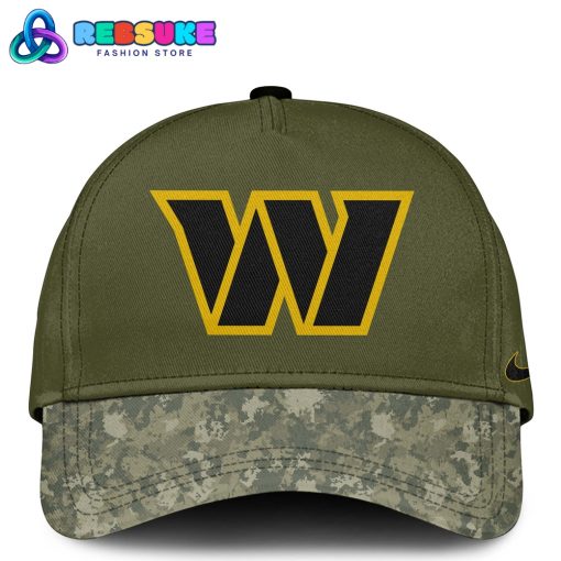 The front of the Washington Commanders NFL x U.S. Army 250th Birthday Celebration Jersey masterfully blends the team’s iconic identity with a powerful military aesthetic. Prominently featured on the upper left chest is the instantly recognizable Washington Commanders “W” logo, with its bold design, rendered in its classic burgundy and gold, symbolizing the team’s strong presence and new era. Below it, the bold, gold “COMMANDERS” lettering proudly proclaims your team allegiance across the chest, set against a striking military olive green background. A subtle, yet powerful, U.S. Army star logo with “U.S. ARMY” underneath is positioned on the lower right, subtly integrating the military tribute into the overall design and creating a harmonious balance between the two celebrated entities on this unique Washington Commanders NFL x U.S. Army 250th Birthday Celebration Jersey.
