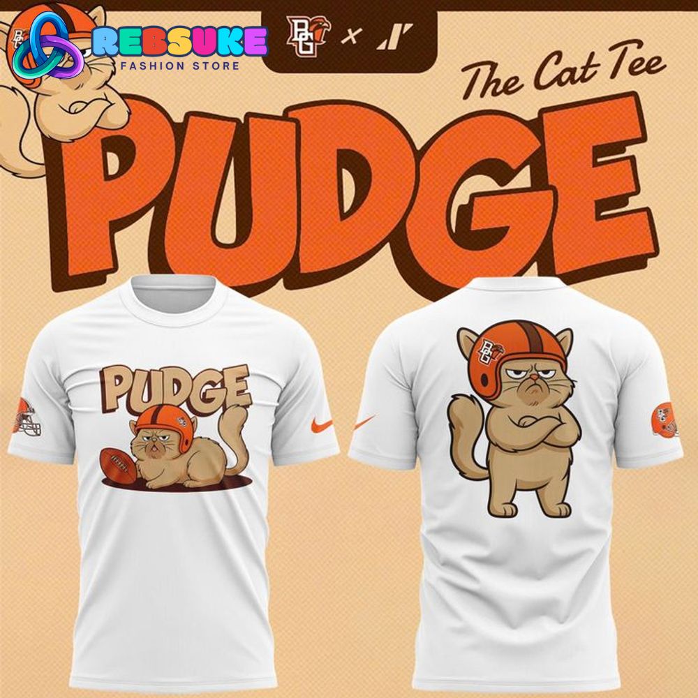 Style & Design of White BGSU Football Pudge The Cat Shirt